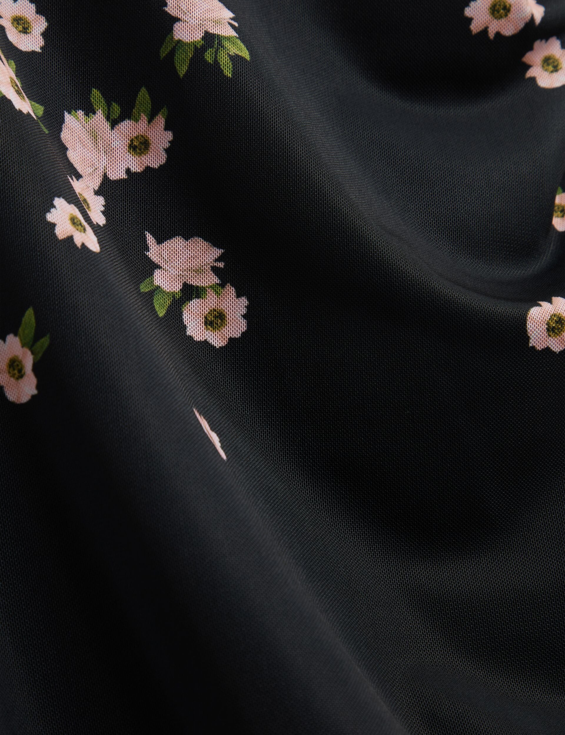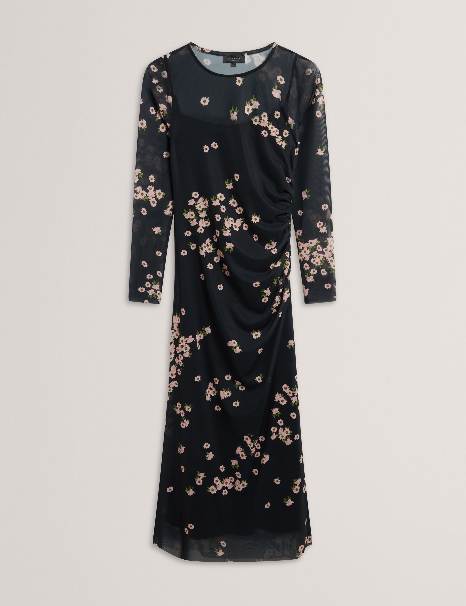 This mesh dress dress combines a striking print with a sleek, column silhouette, creating a bold yet elegant look perfect for making a statement at any event.