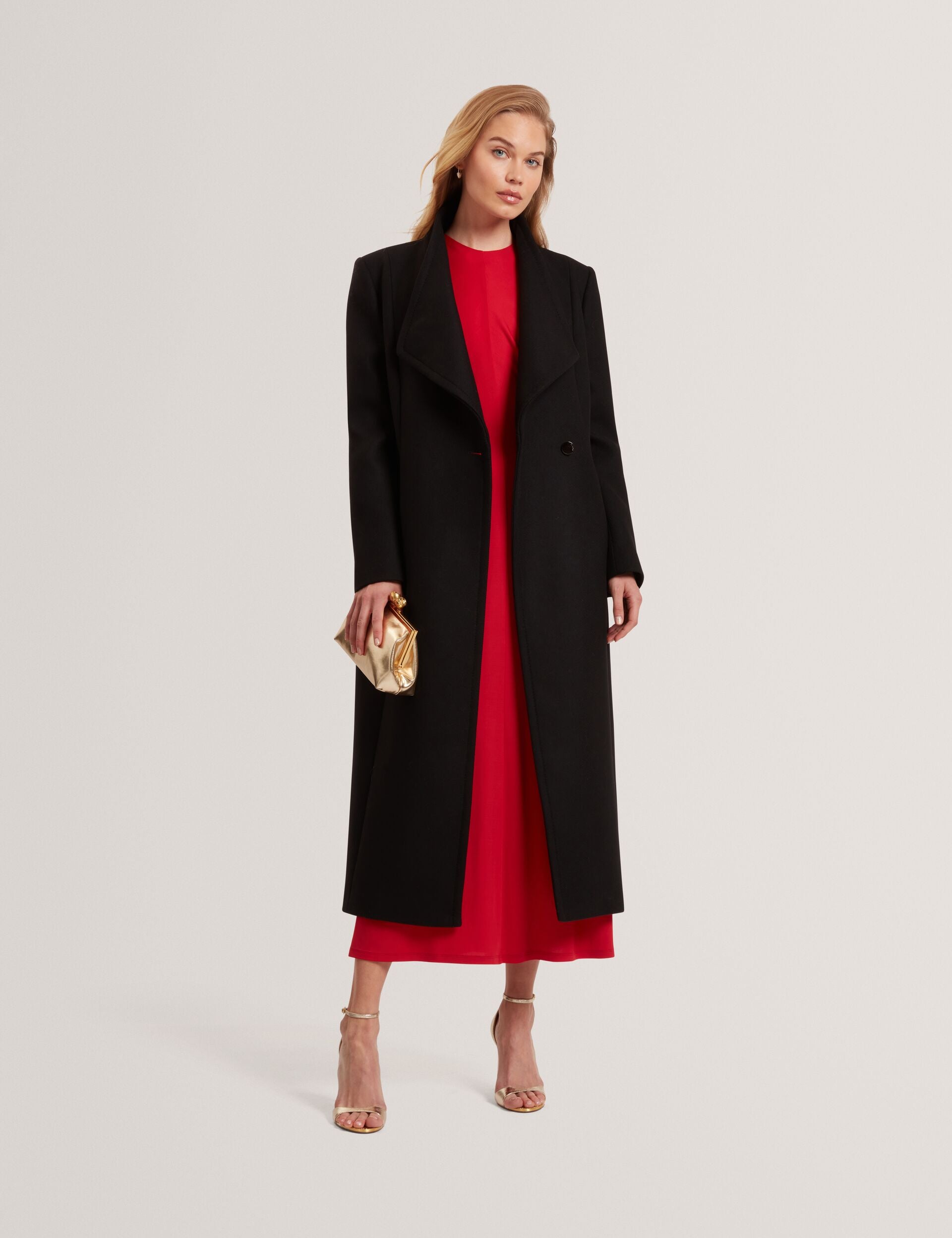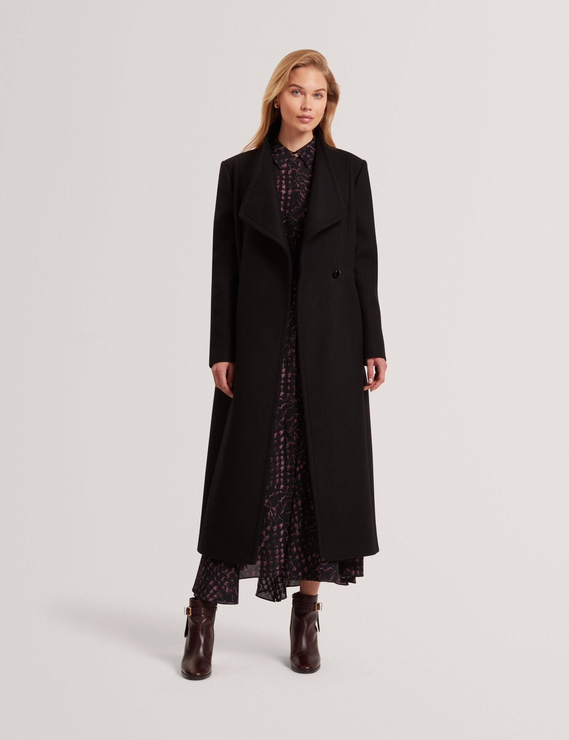 Introducing a brand new Ted style for the season: MINDEE. Made with double-face wool, this longline wrap coat is the elegant option for winter layering with its sculpted hourglass silhouette. A single button fastening maintains those clean lines, complete with an exaggerated collar for a feminine touch.