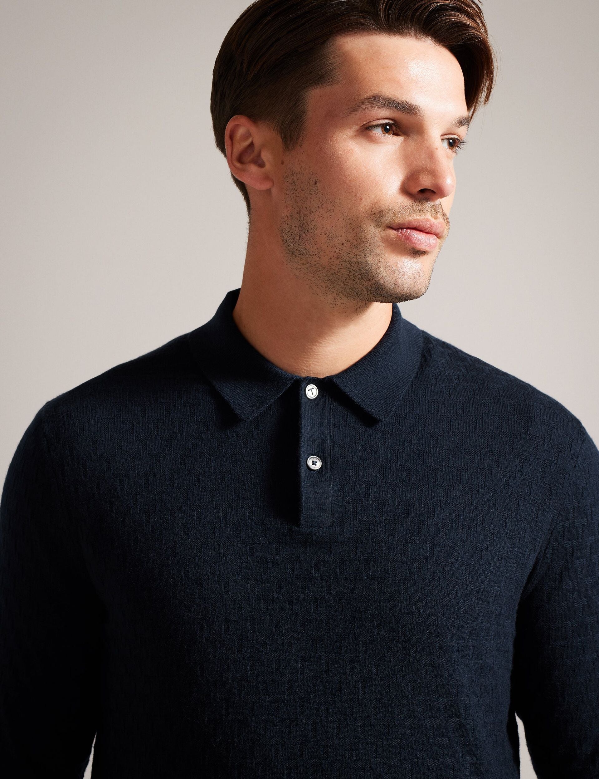 T Knit Long Sleeve Polo Top