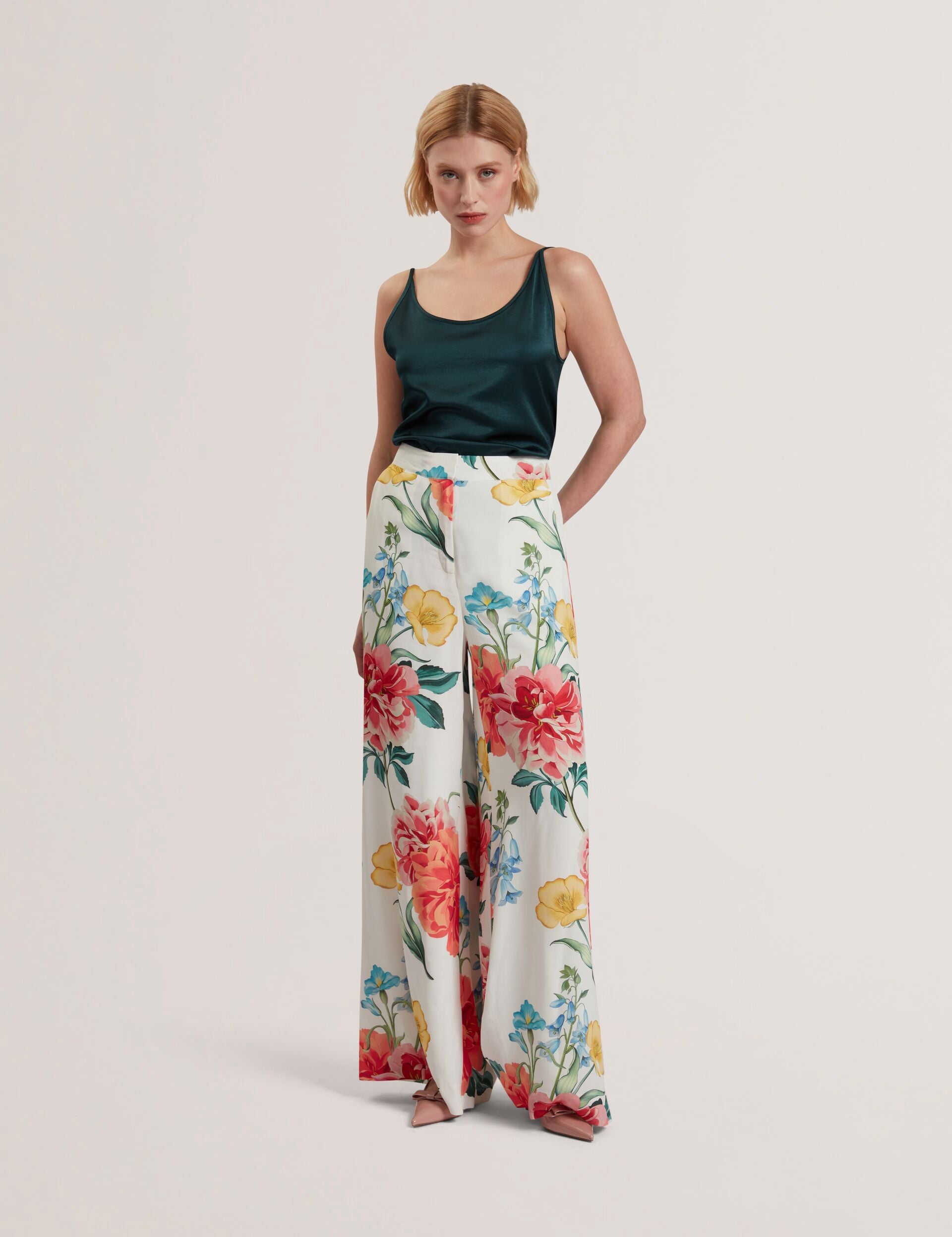 Floral Print High Waisted Wide Leg Trousers