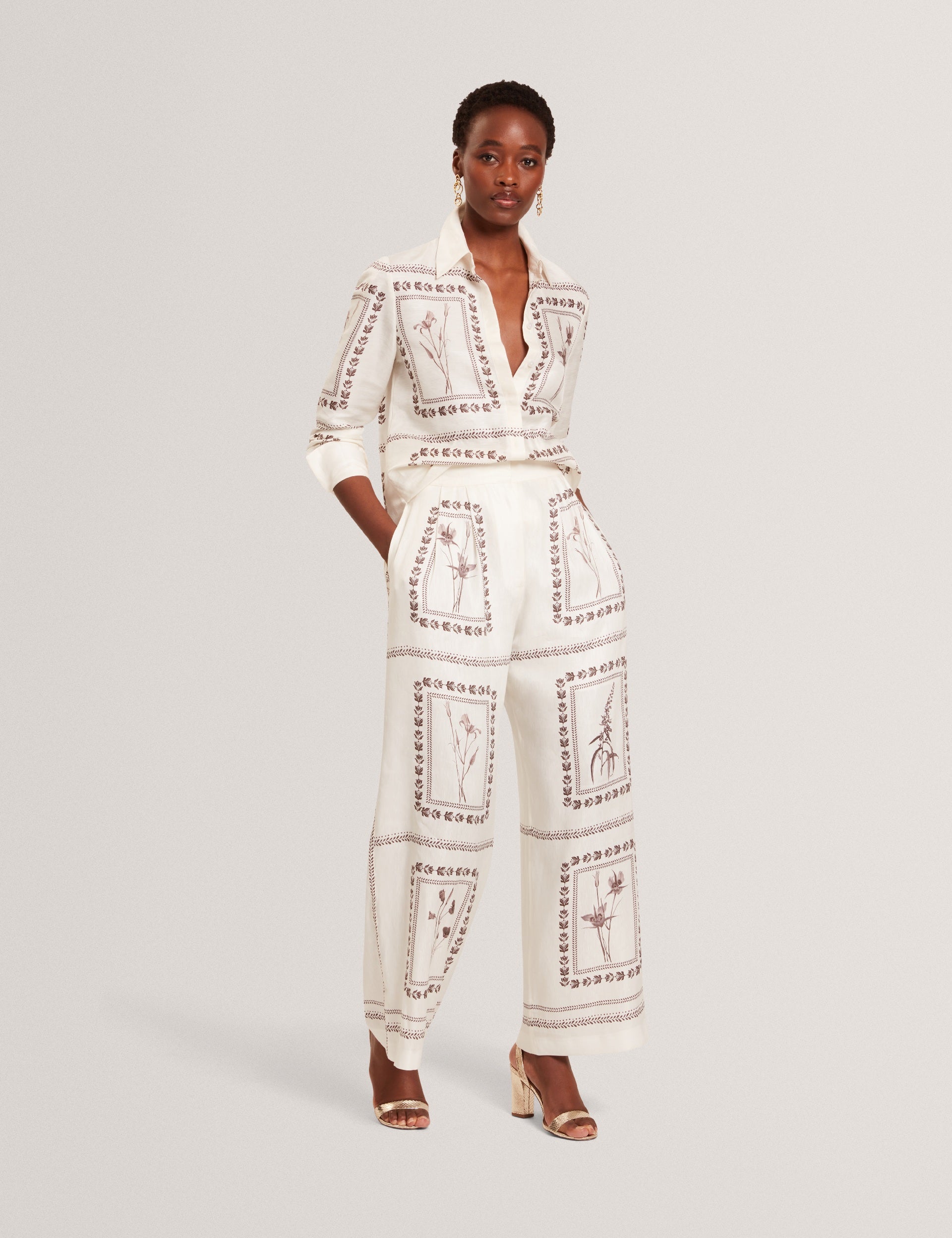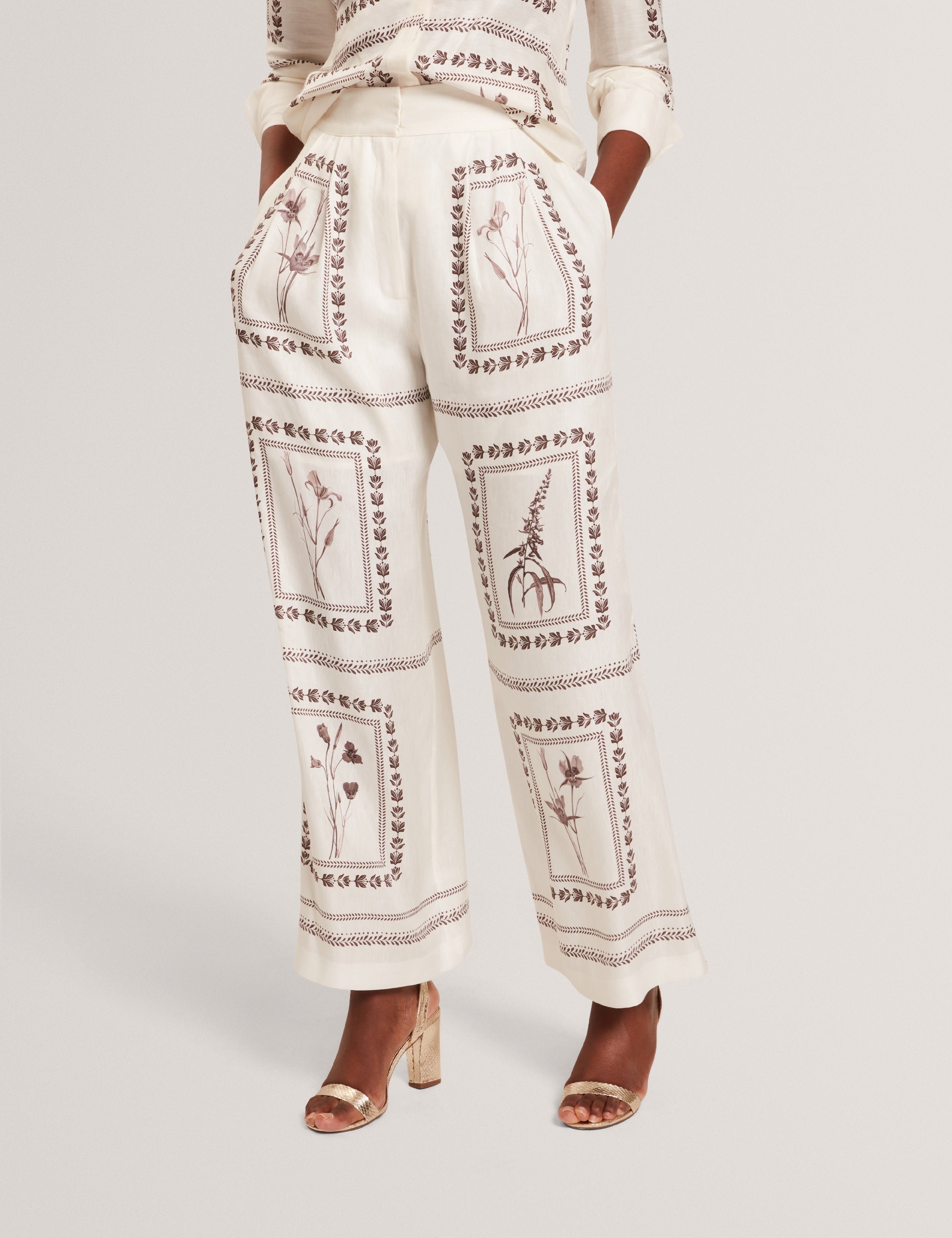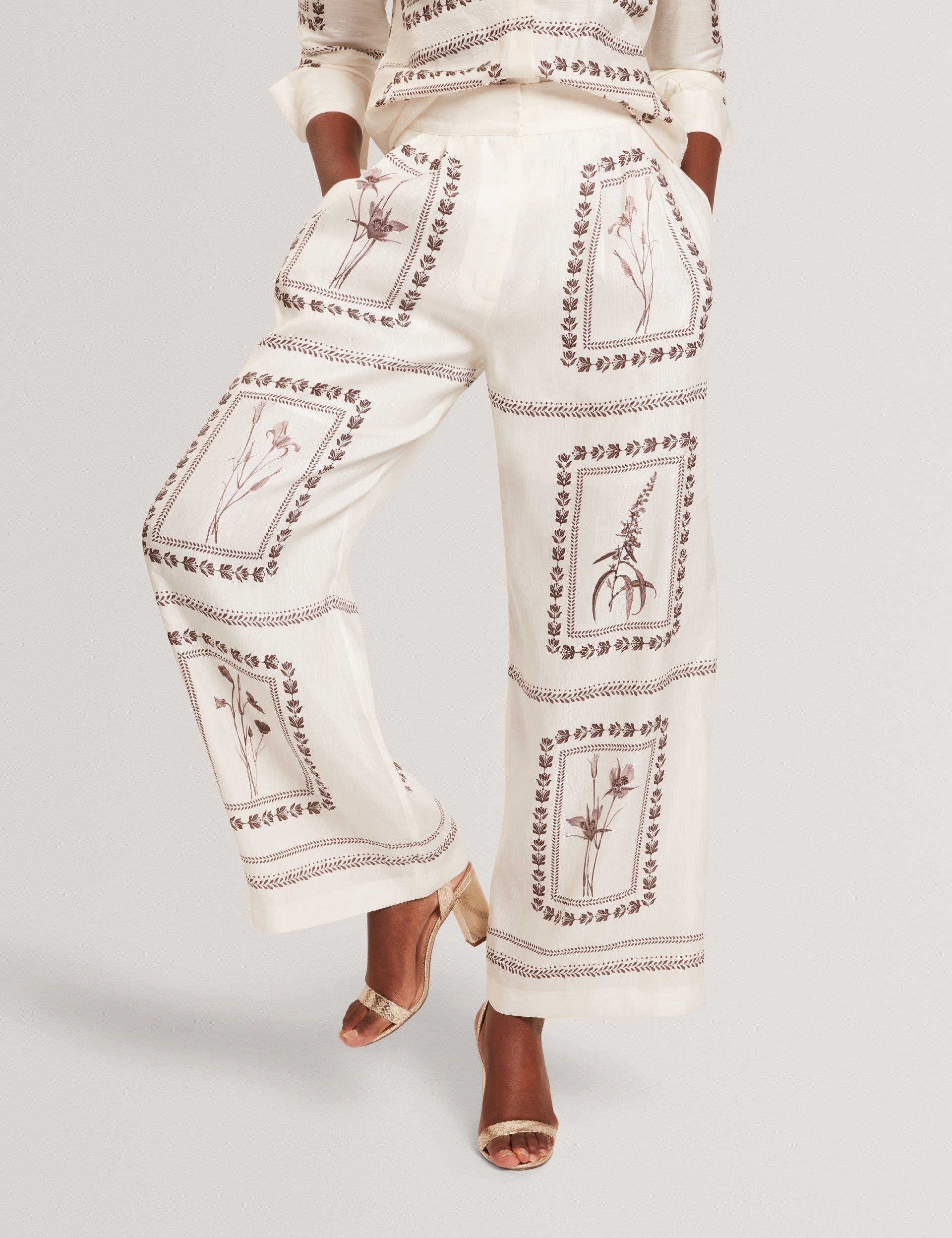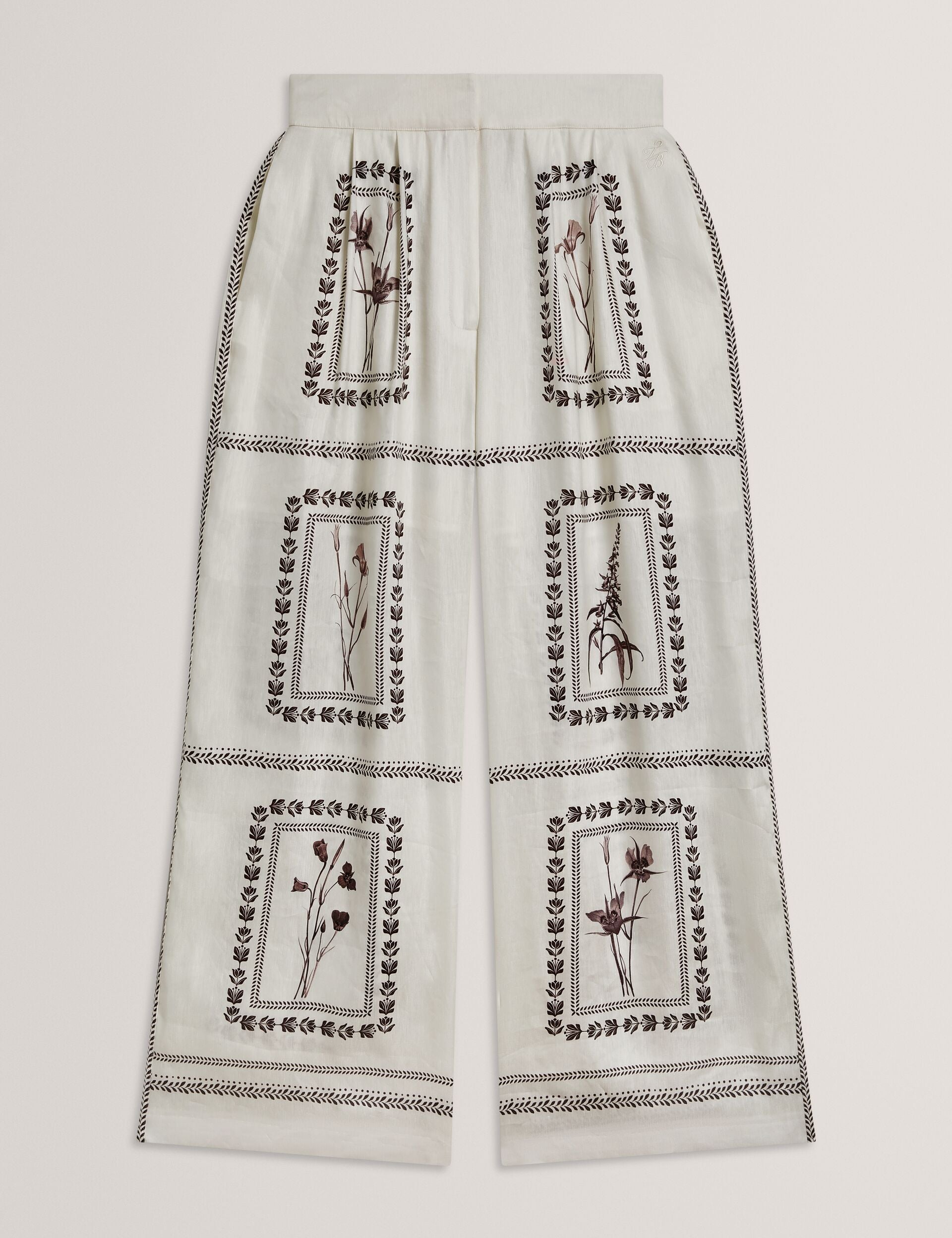 Panel Print Silk Linen Wide Leg Trousers
