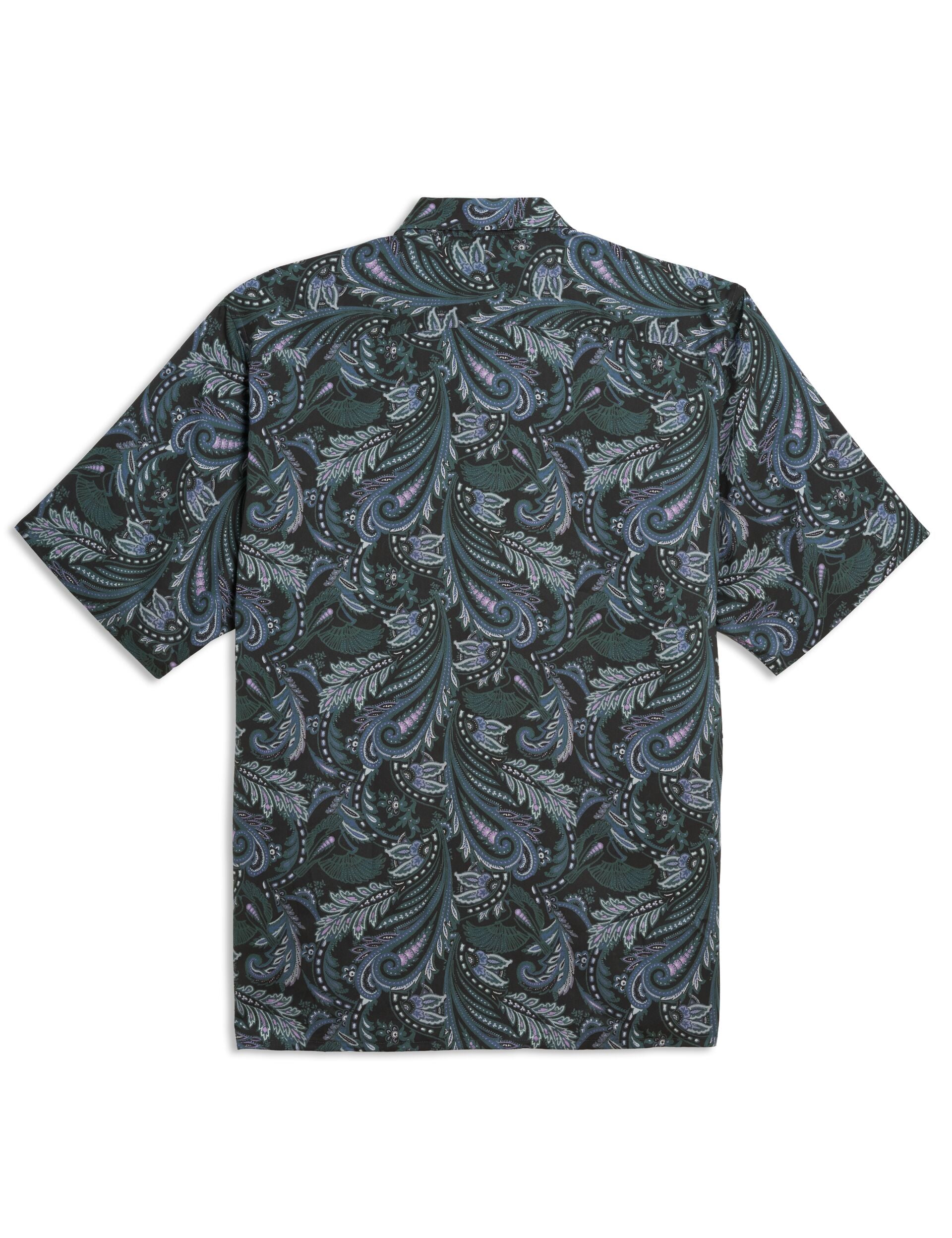 Elevate your warm-weather wardrobe with this sophisticated short sleeve shirt that showcases an intricate paisley print across its entire surface. The flowing, ornate pattern brings heritage-inspired elegance to casual styling, while the relaxed fit and breathable construction ensure effortless comfort. Perfect for transitioning from daytime leisure to evening occasions with refined ease.