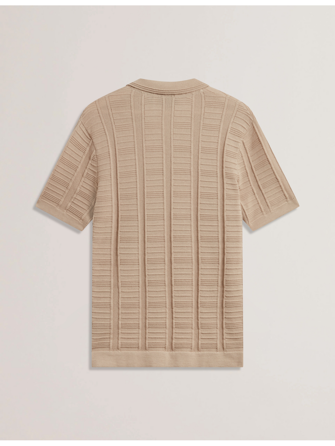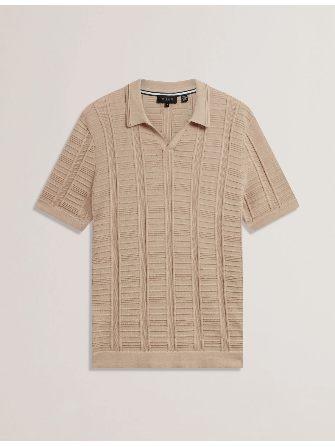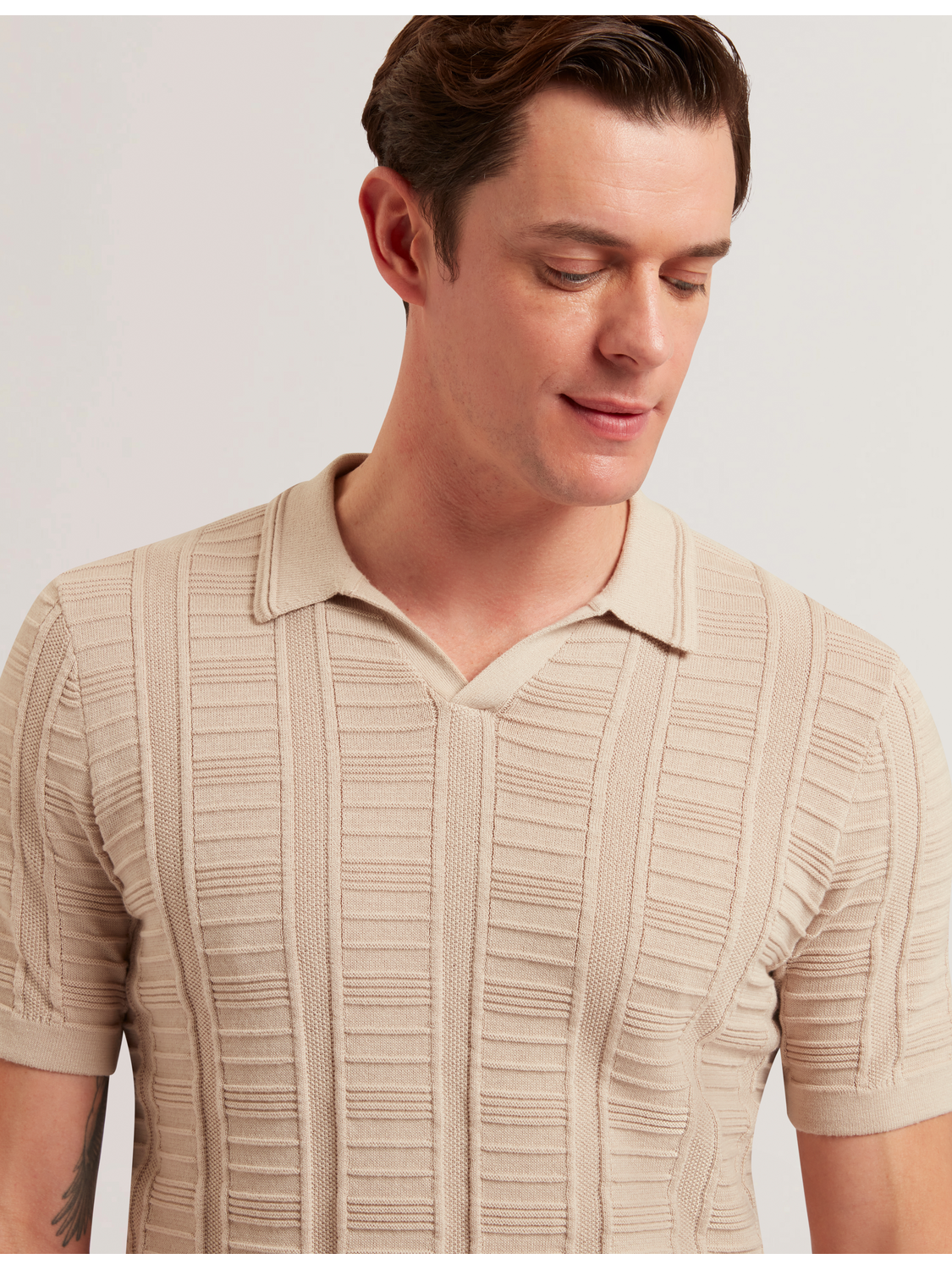 Textured Stripe Open Neck Knitted Polo Shirt