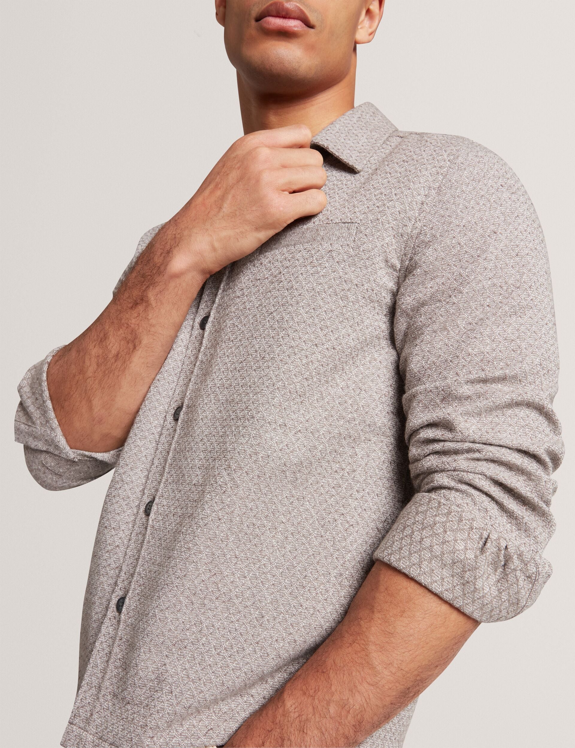 RYNEL is the piece to throw on when your outfit is in need of some elevation. This long sleeve overshirt is crafted from a comfortable cotton blend that makes layering seamless, and is woven with a subtle diamond texture to add interest without overdoing it.