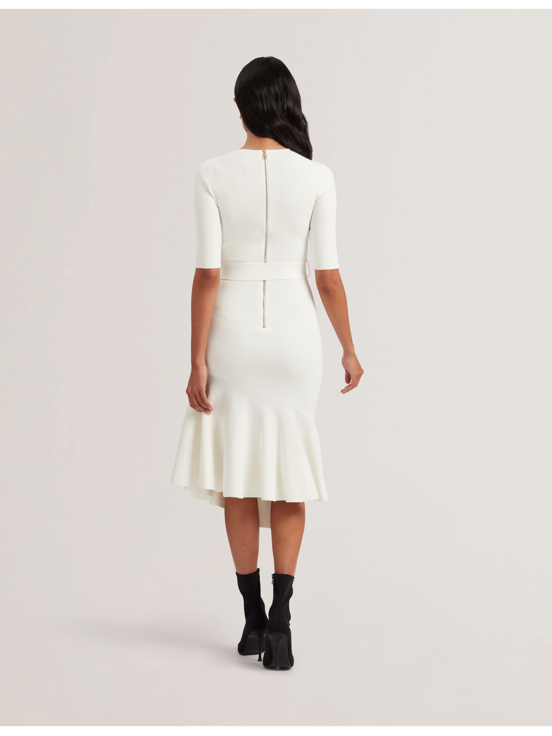 - May is 5'8.5" / 1.74m and wears Ivory in a Ted size 2