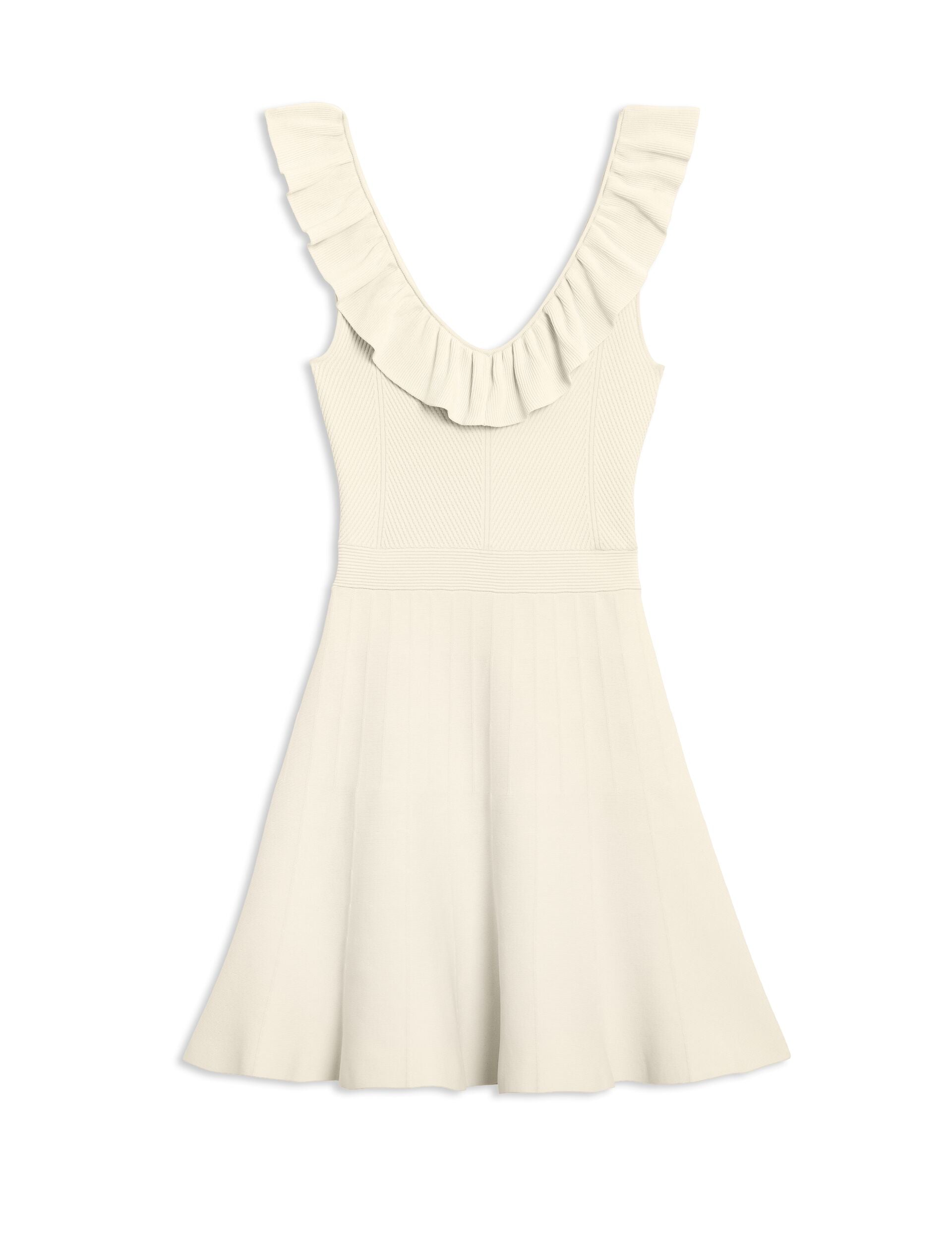 Feminine charm meets contemporary sophistication in this beautifully crafted knitted piece that elevates your wardrobe with effortless elegance. The playful ruffle neckline adds a romantic flourish to the sleek silhouette, while the fit-and-flare shape creates a universally flattering profile. Perfect for transitioning from desk to dinner, this versatile piece pairs beautifully with heels and a blazer for polished professionalism or sandals for weekend ease.