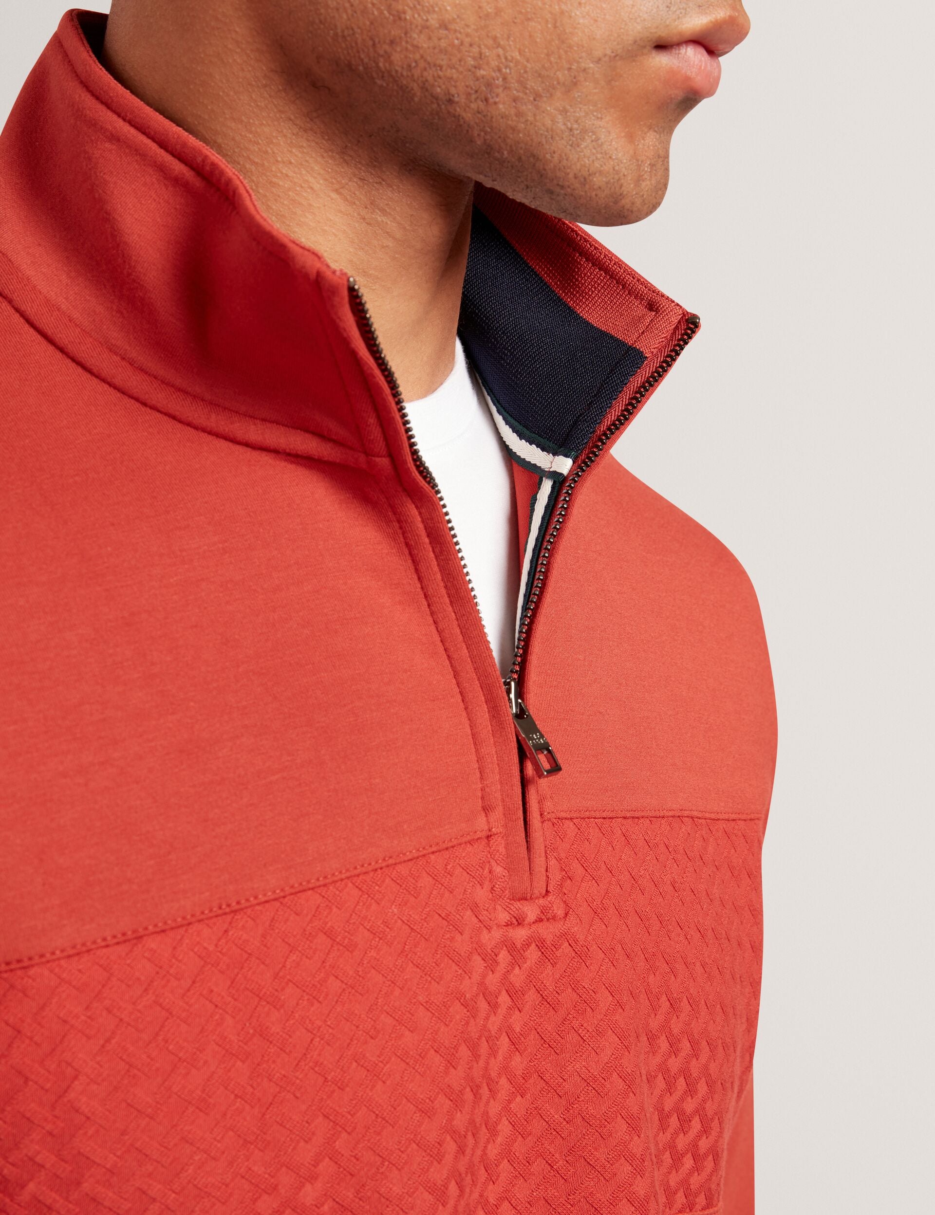 When you need to pull on an extra layer, reach for SIMONEA. This soft quarter-zip sweatshirt features a funnel neckline for warmth, and a T pattern panel across the chest to add modern texture to its classic look. Layer under winter coats or over a crew neck t-shirt.