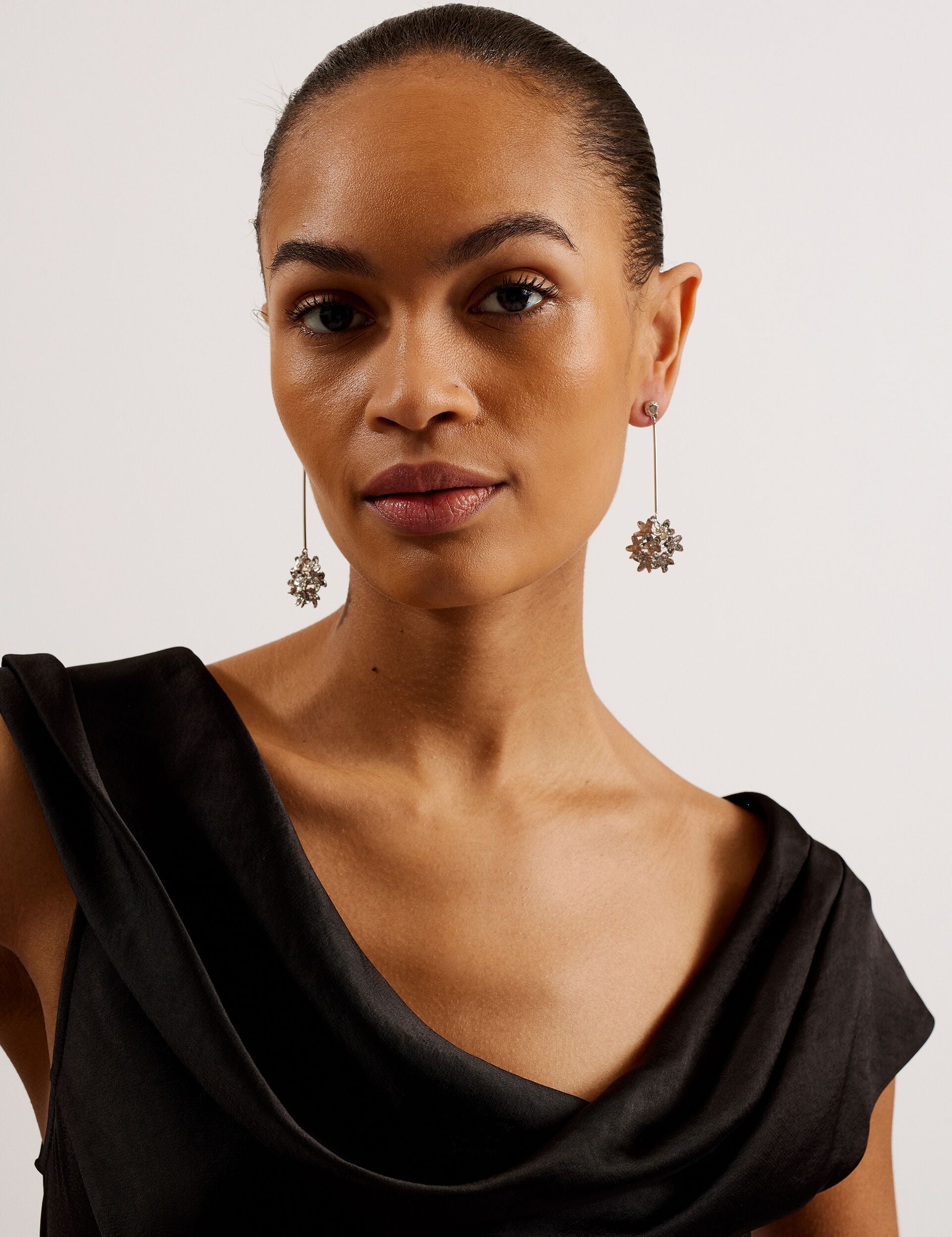 - Draped cowl neckline