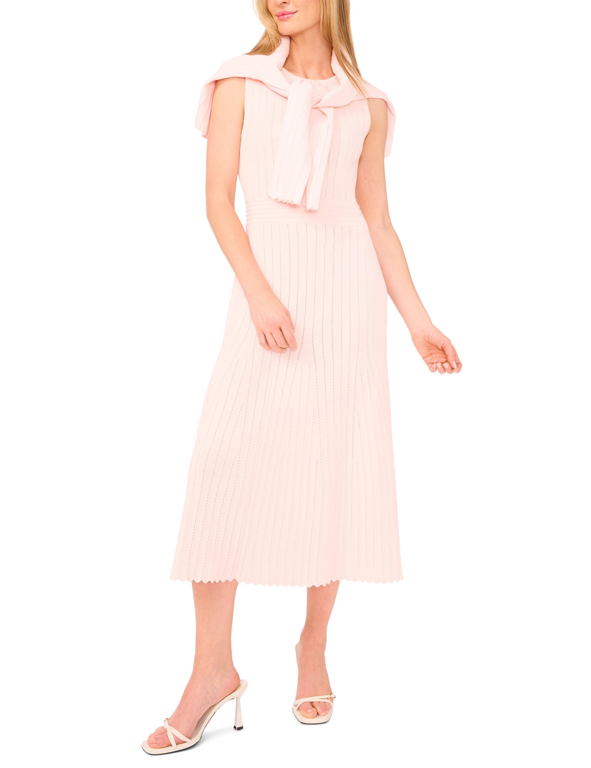 SLEEVELESS POINTELLE & RIB MIDI DRESS