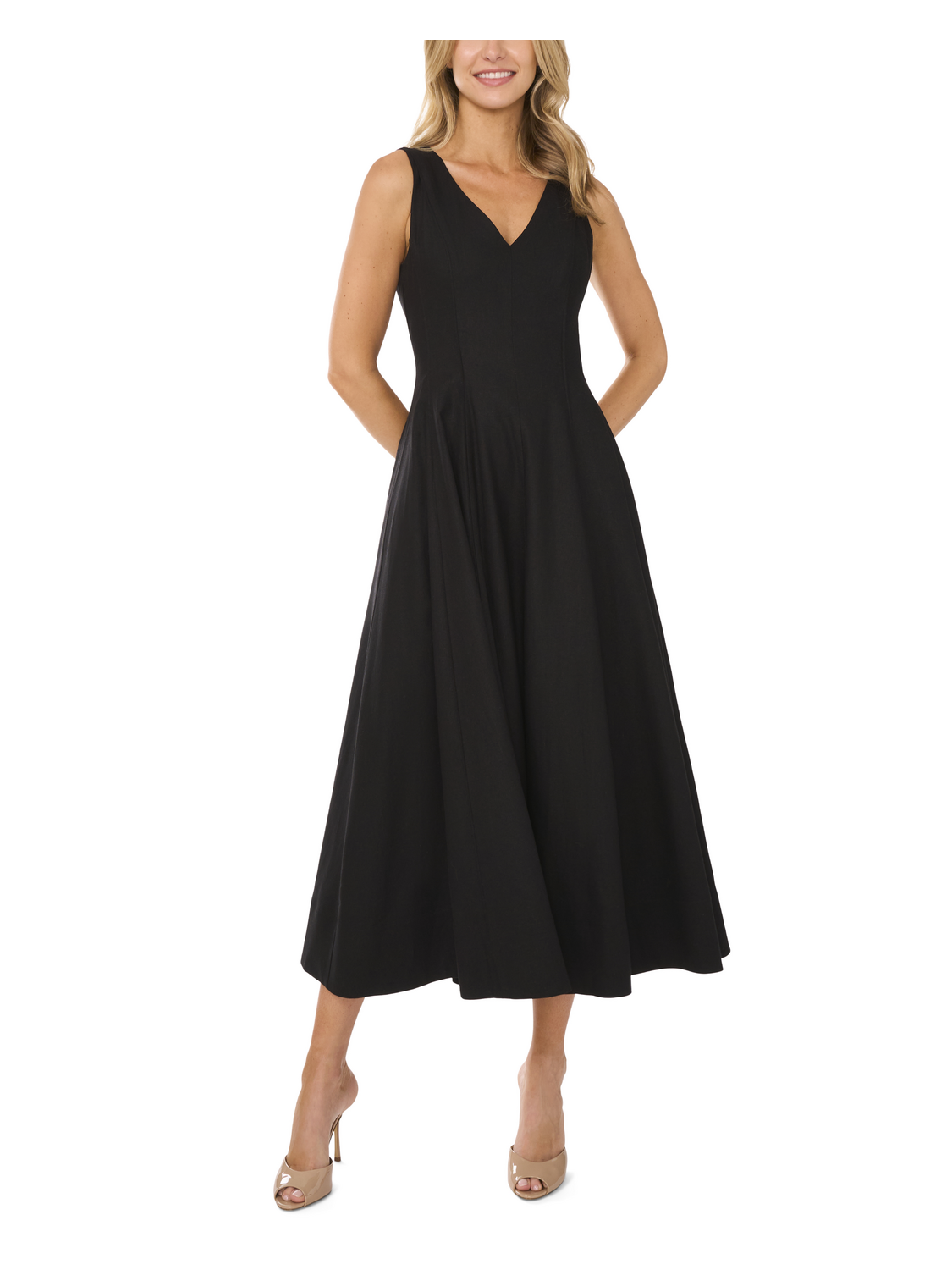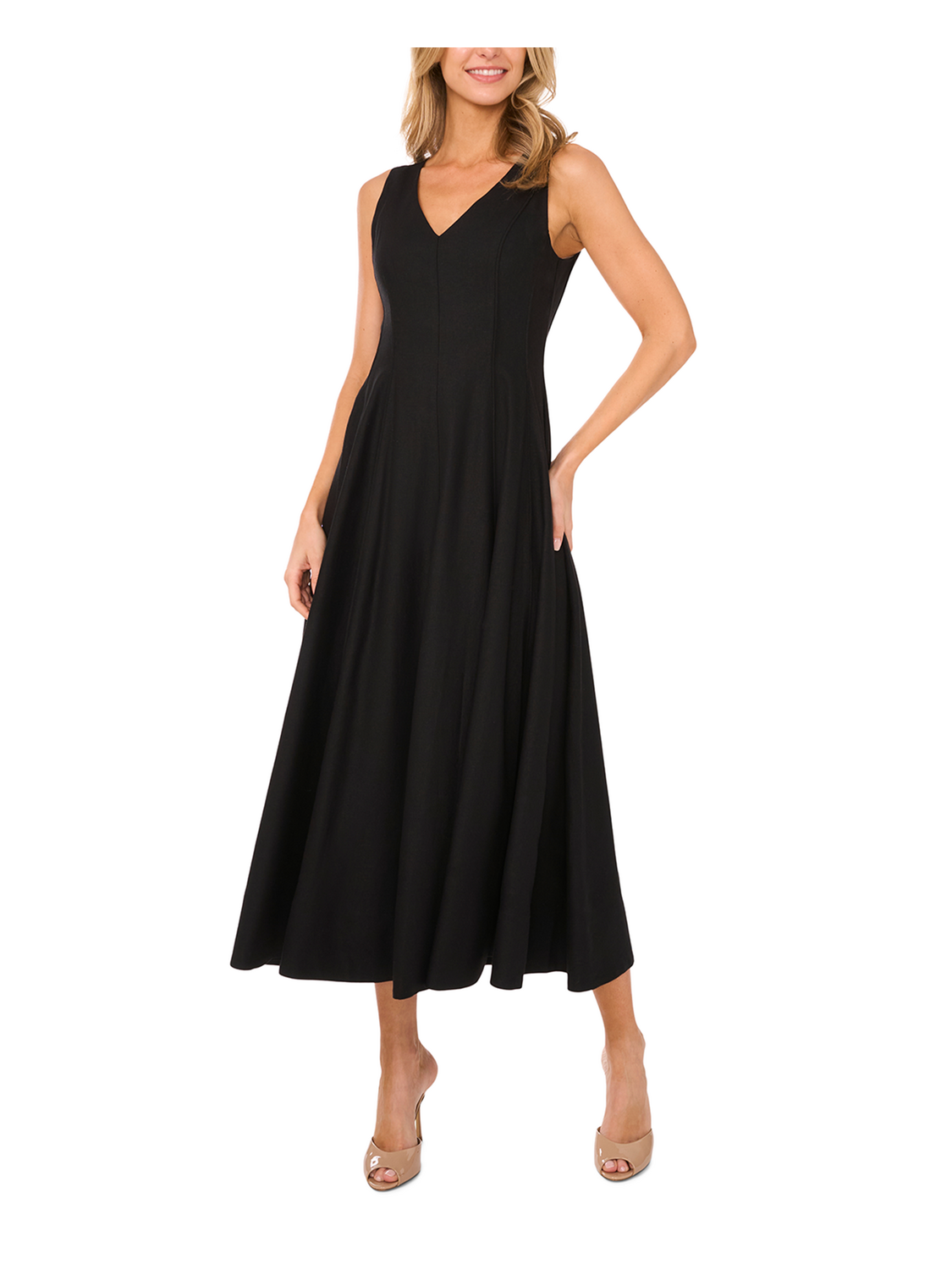 SLEEVELESS V-NECK PLEATED MAXI DRESS