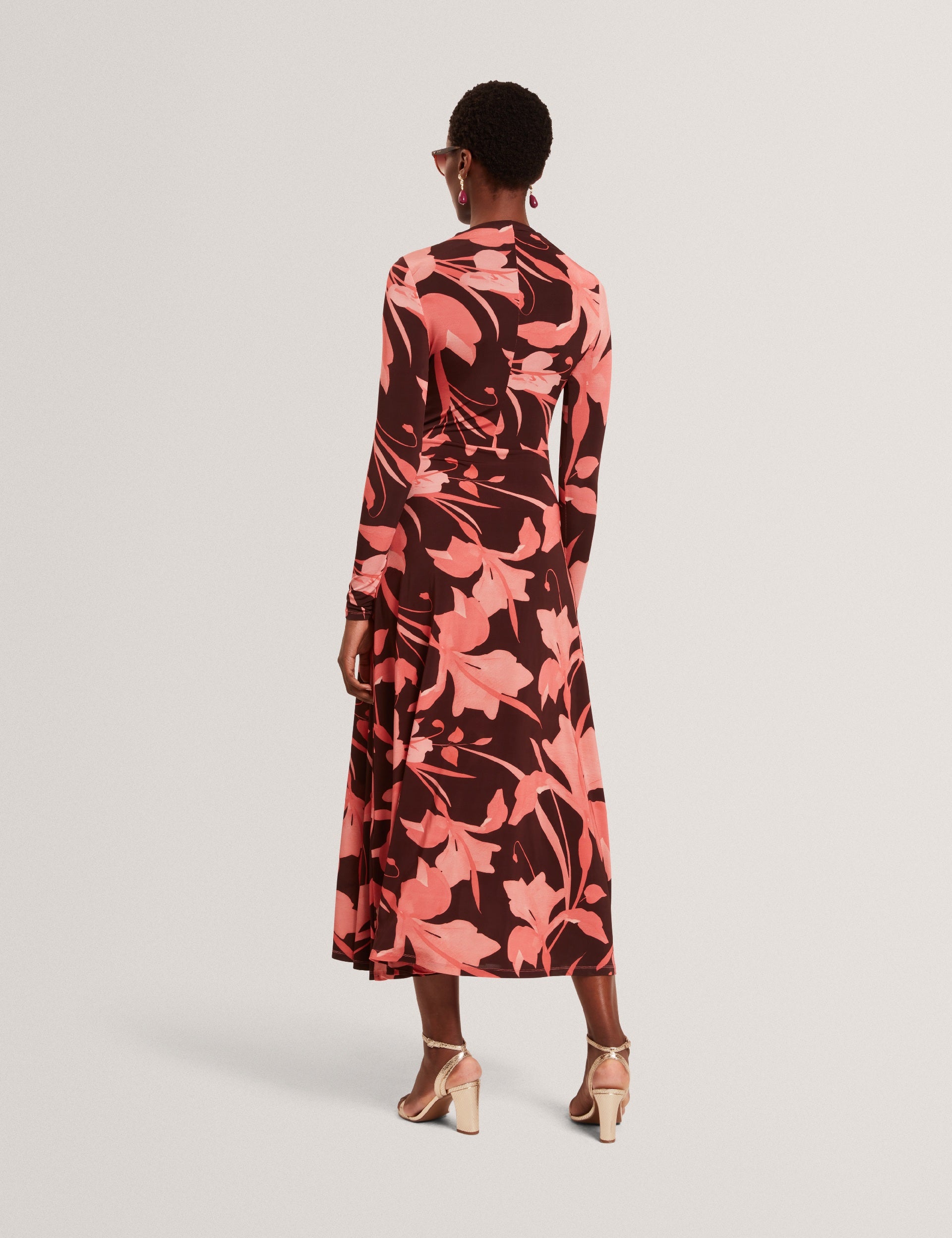 Slinky Printed Jersey Long Sleeve Midi Dress