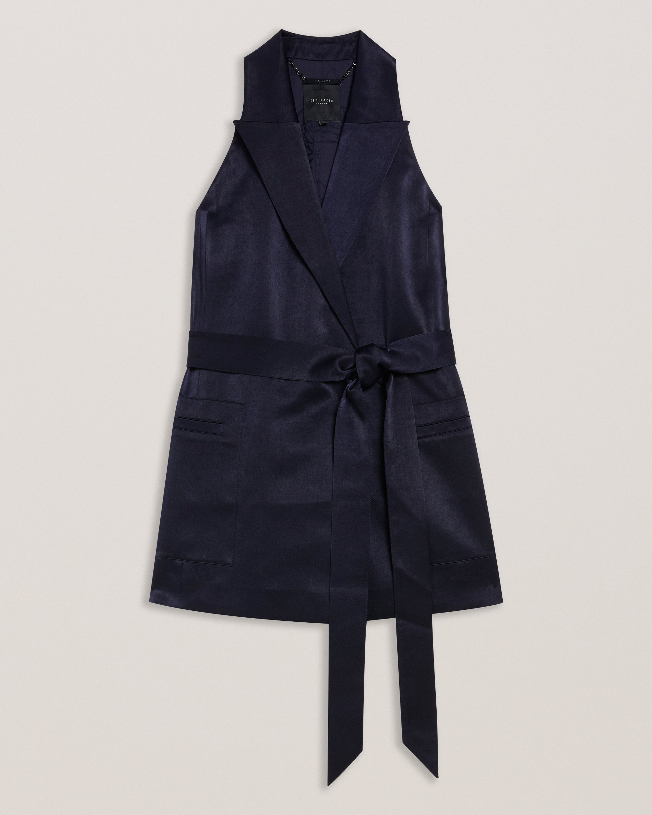 Tailored Satin Longline Vest with Belt
