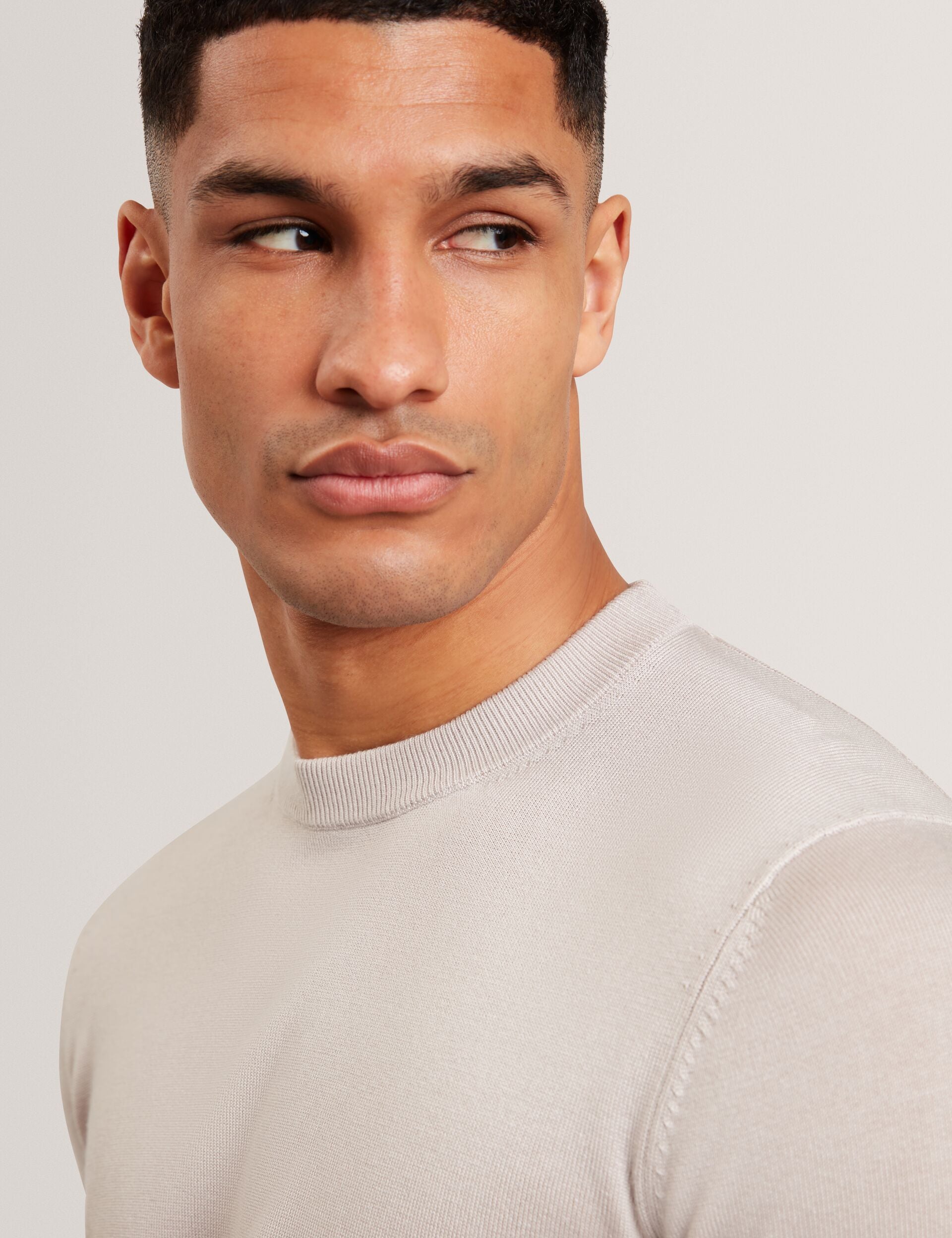 - Classic crew neckline