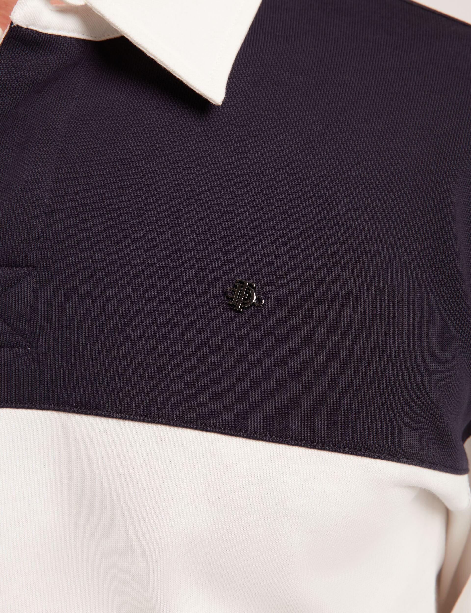 A casual wardrobe classic, the TRAVISS rugby shirt is the modern way to do preppy style. Block stripes bring easy interest, and we've added a concealed button placket to the collared neckline for a cleaner finish. Pure cotton jersey fabric creates a comfortable fit that you'll be wearing on rotation.
