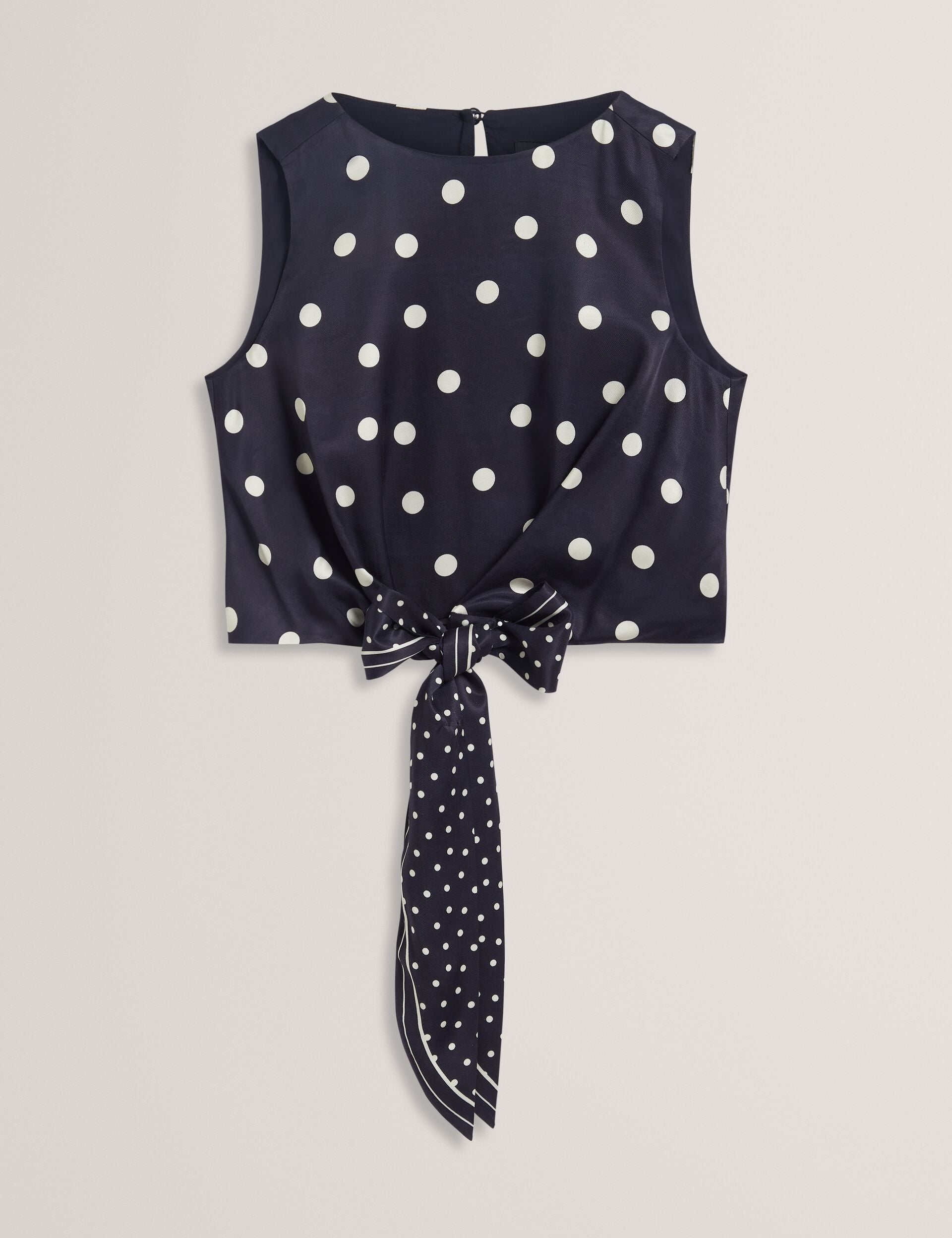 Polka Dot Tie Front Sleeveless Crop Top