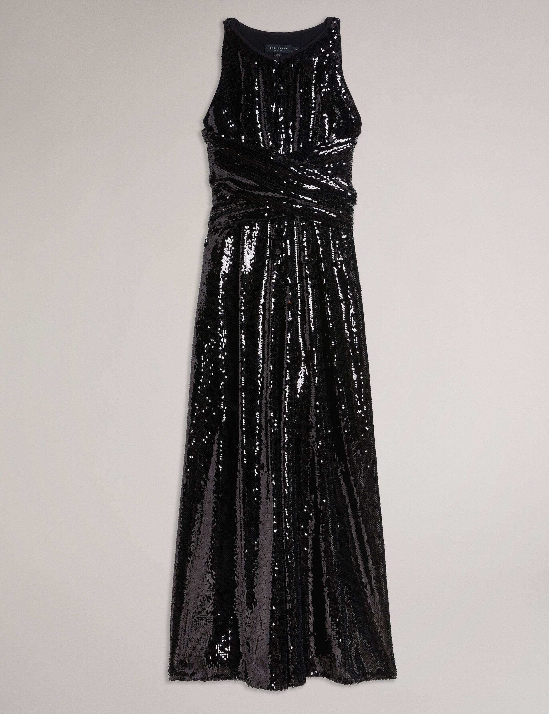 Party time means VIVALEE. Adorned with sequins, this floaty jumpsuit makes a statement. Pair with understated accessories to let it shine.