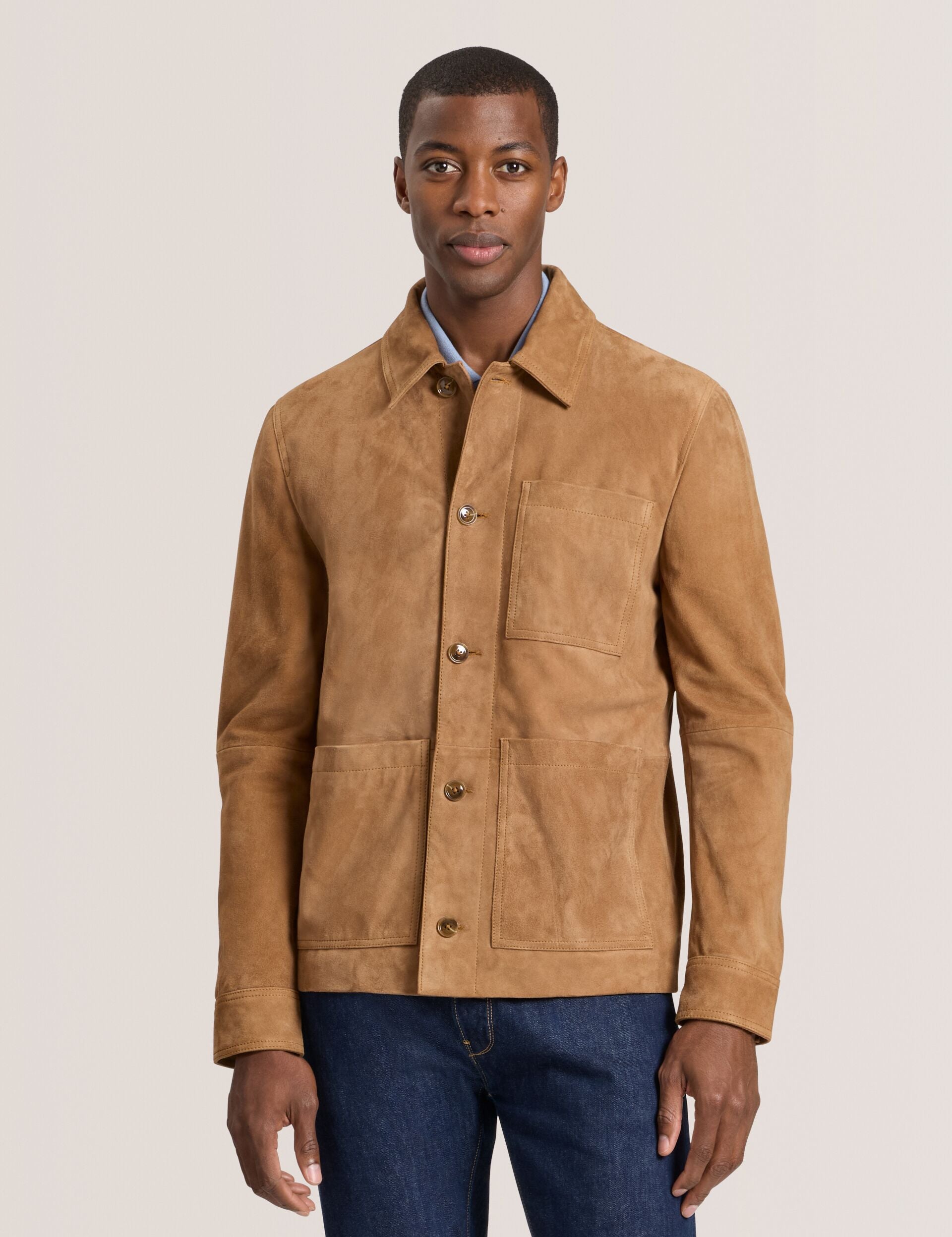 Suede 3-Pocket Button Front Jacket