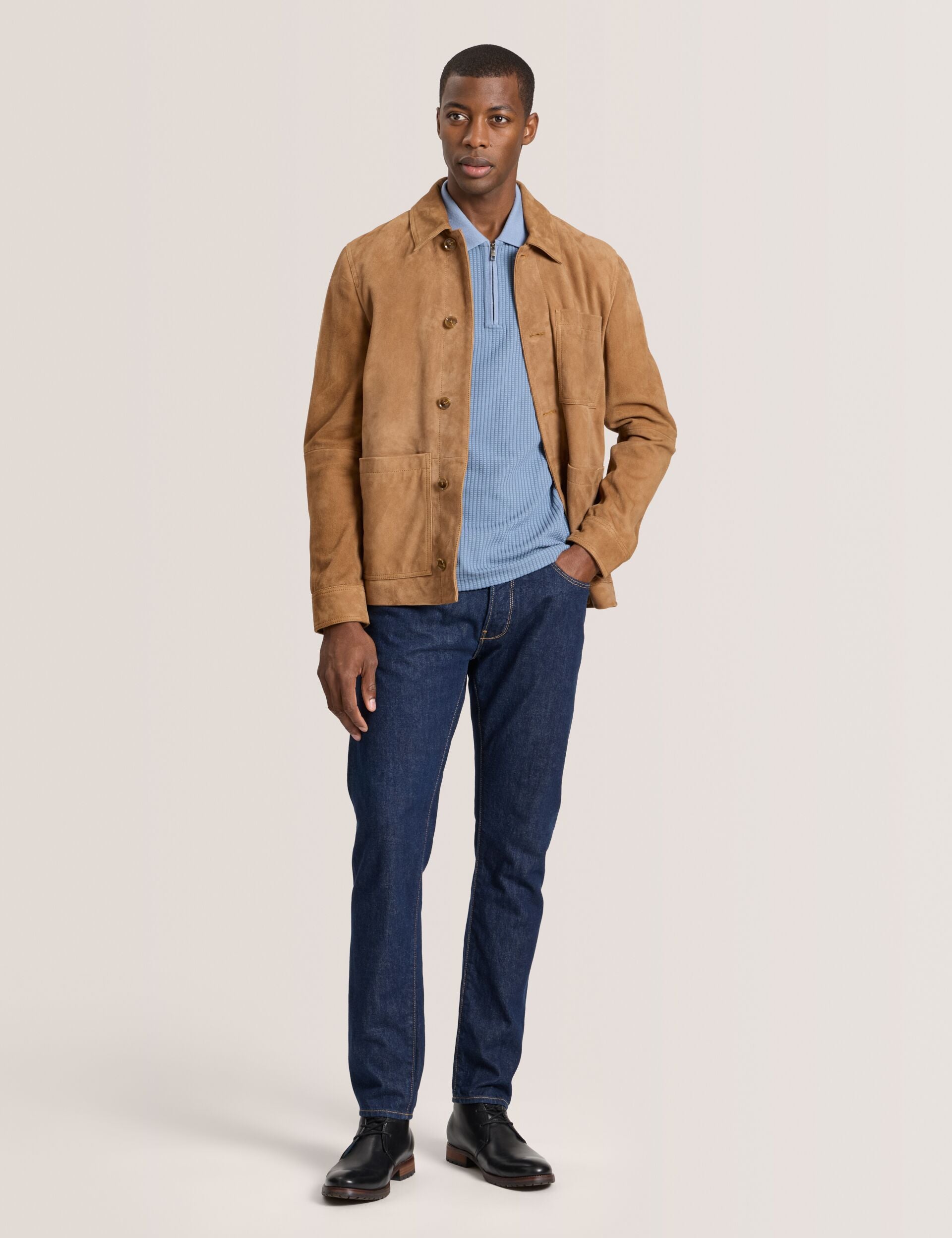 • Modern shirt jacket silhouette