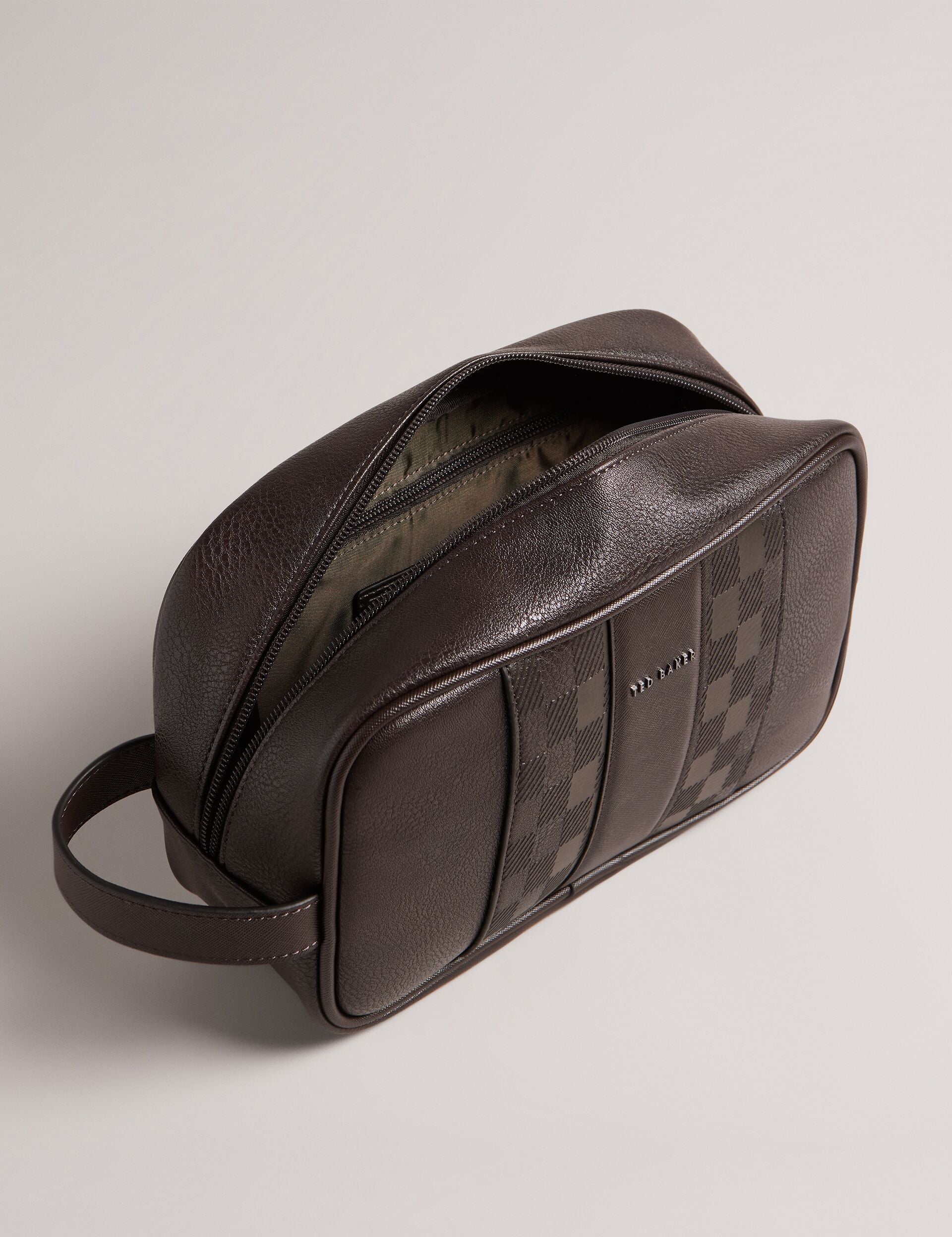 Check Panel Faux Leather Washbag
