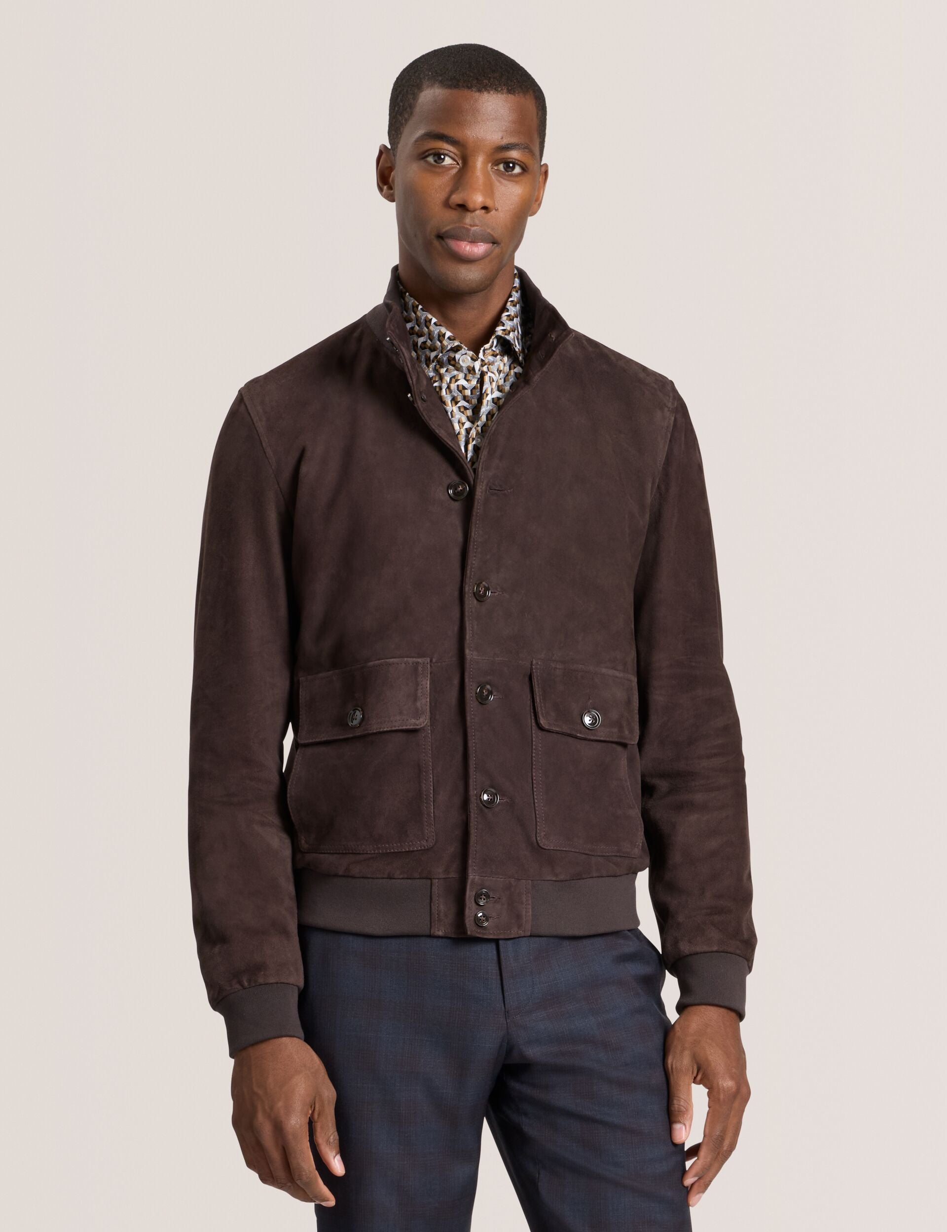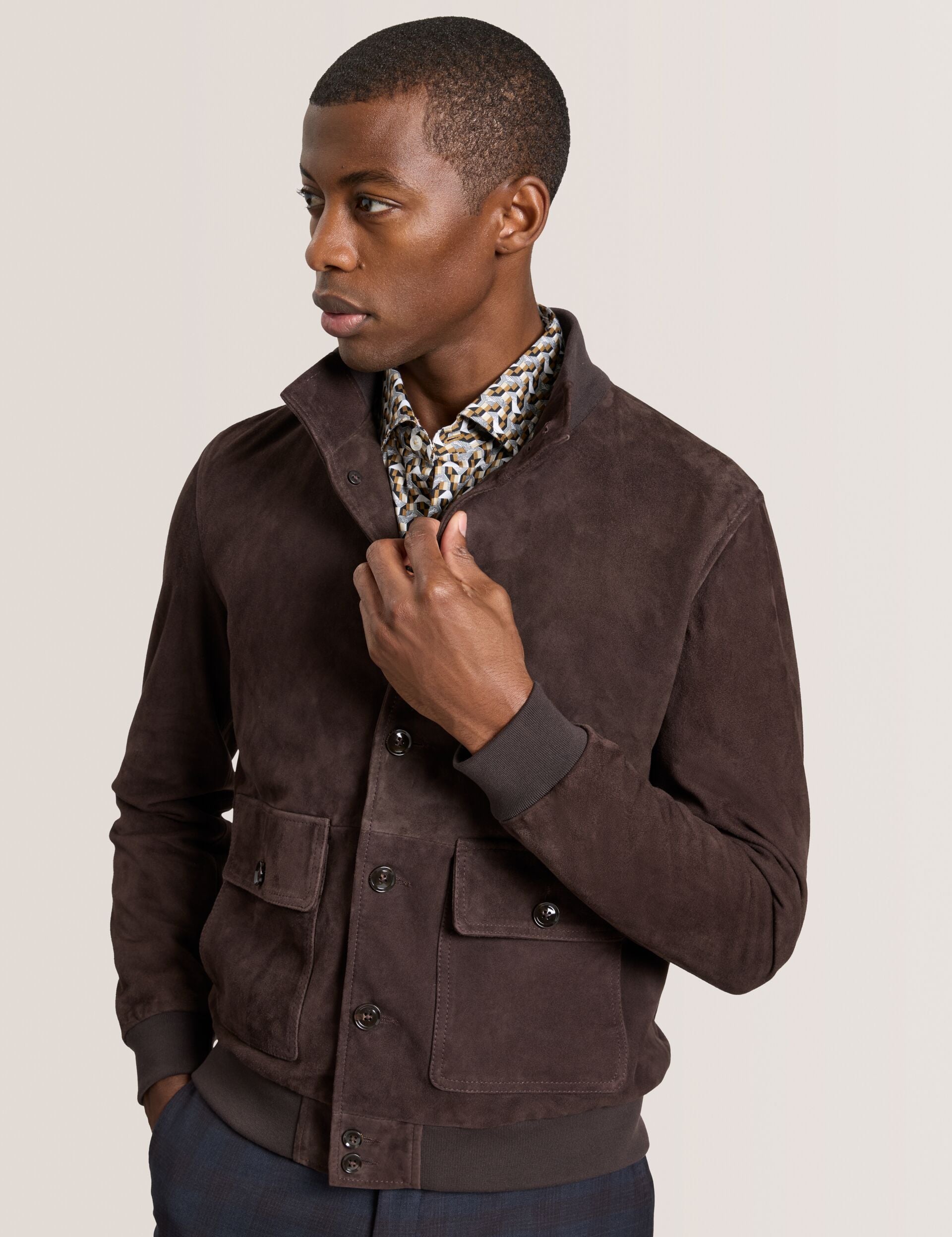 A refined take on casual sophistication, the Weir Jacket is crafted from 100% genuine suede for a luxuriously soft feel. Fully lined for comfort, it features a modern silhouette with classic button fastening and practical patch bellows pockets—perfect for weekend adventures or relaxed city strolls.
