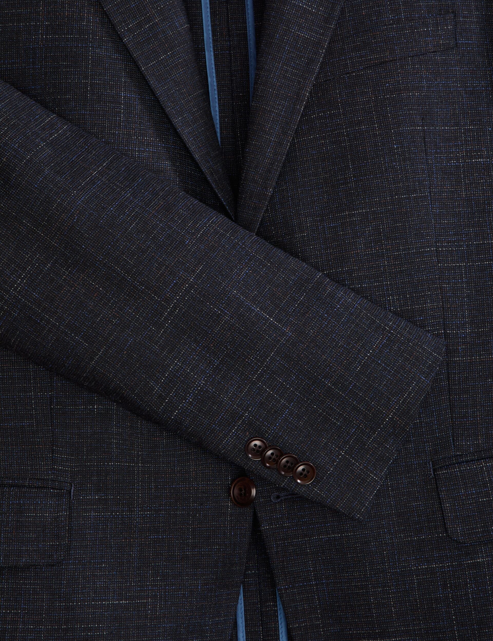 The Wellington Jacket redefines smart casual with its textured, lightweight weave and refined tailoring. Crafted from a breathable wool-cotton blend, it features a modern fit with notched lapels, a two-button front, and flap pockets for timeless appeal. The subtle crosshatch pattern adds dimension and depth, while the contrast lining delivers that signature Ted Baker flair. Ideal for dressing up with chinos or pairing down with denim, this jacket effortlessly bridges formal and relaxed style.