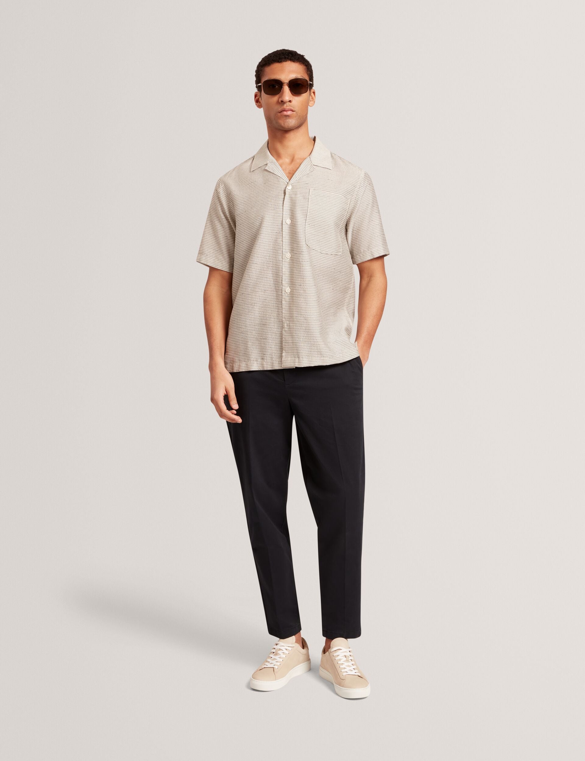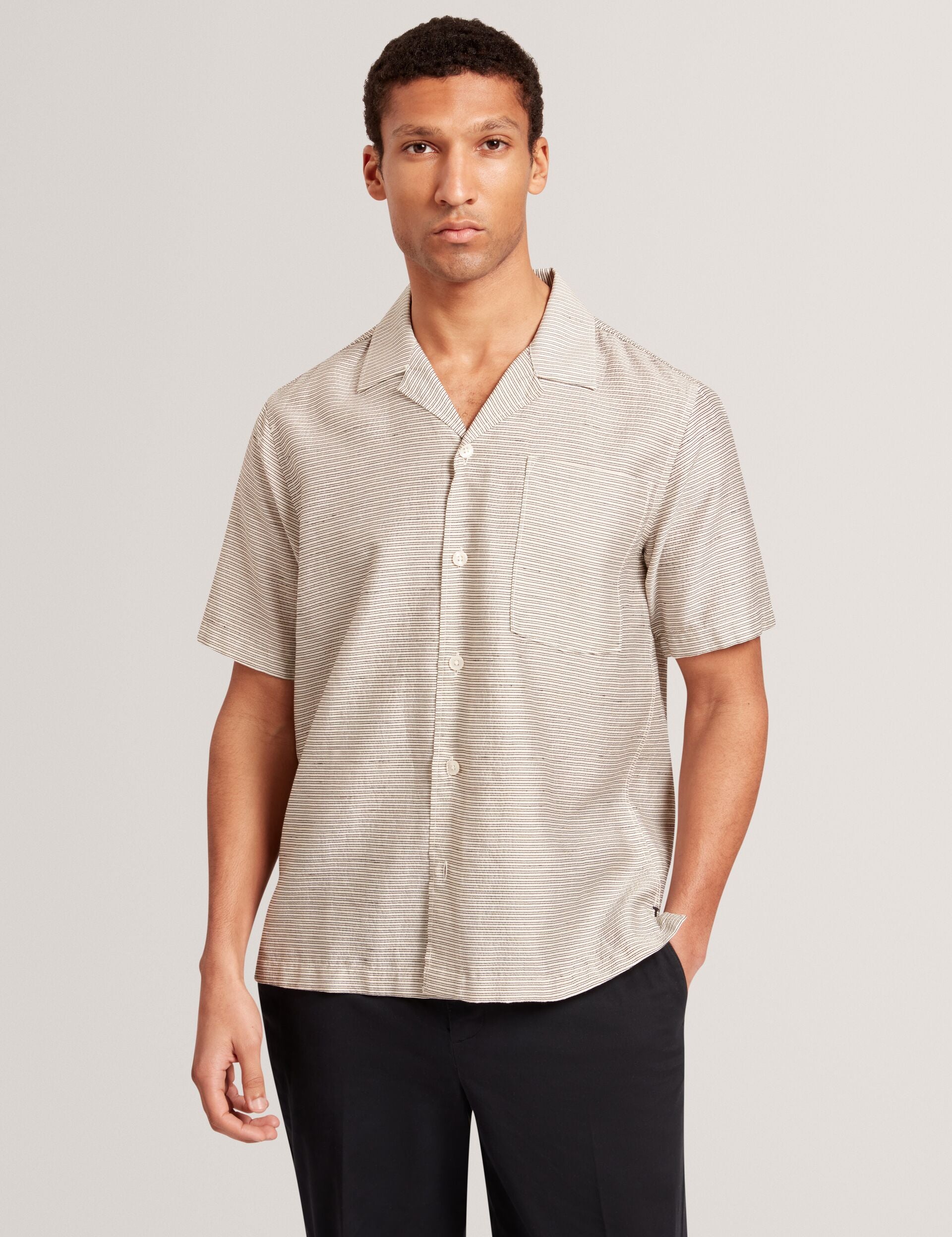 Relaxed Textured Stripe Short Sleeve Shirt