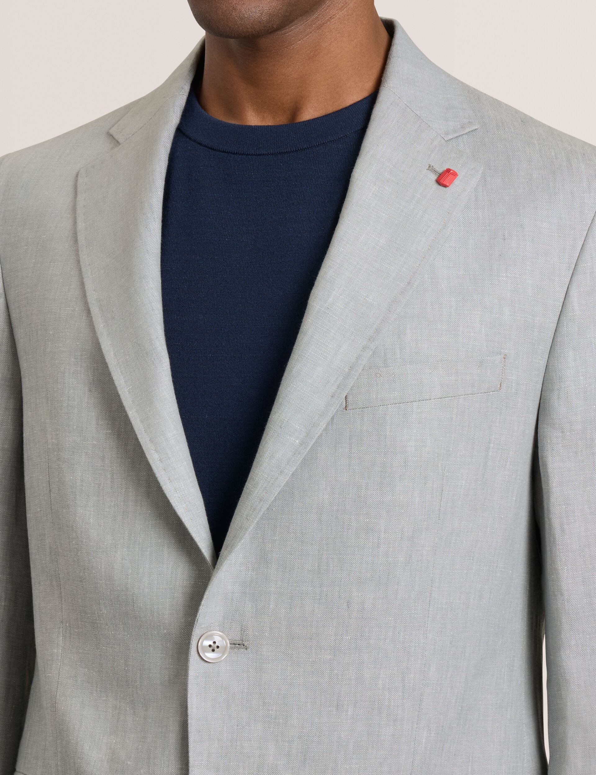 Elevate your sartorial game with this effortlessly sophisticated linen suit jacket. A nod to timeless tailoring, this design boasts a single-breasted, two-button closure with a stylish notch lapel for a contemporary twist. Perfect for both business affairs and social gatherings, let this jacket refine your wardrobe with its understated elegance.