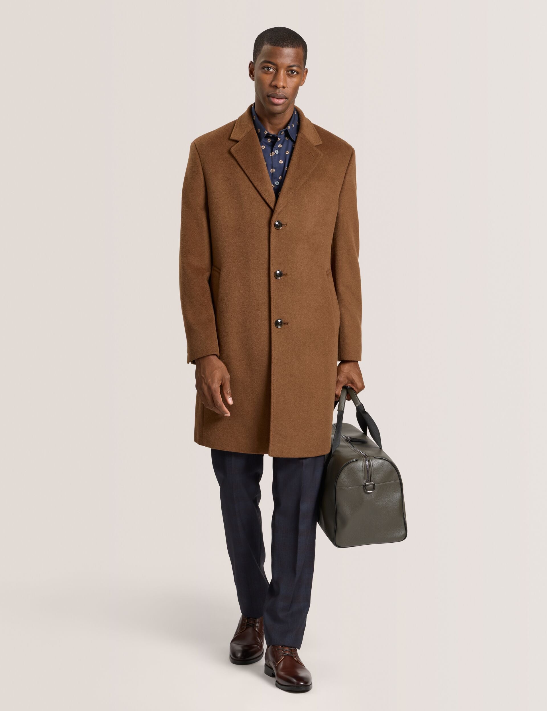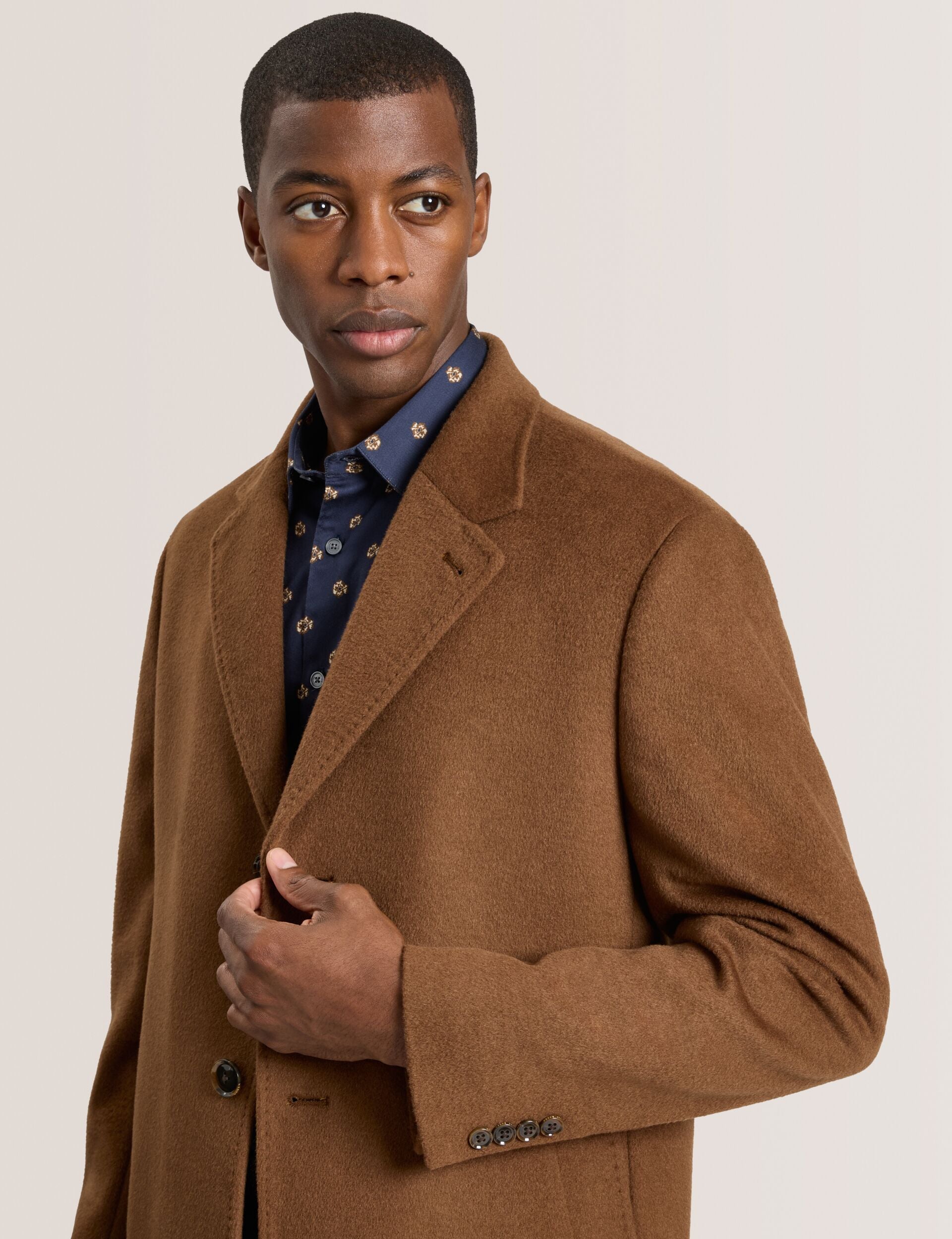 Step into timeless sophistication with the Wystan Overcoat. Crafted from a sumptuous wool-cashmere blend, it drapes beautifully for effortless elegance. Fully lined for comfort, with sleek slash pockets and classic button fastening, it’s designed for crisp mornings, city strolls, or evenings where style matters most.