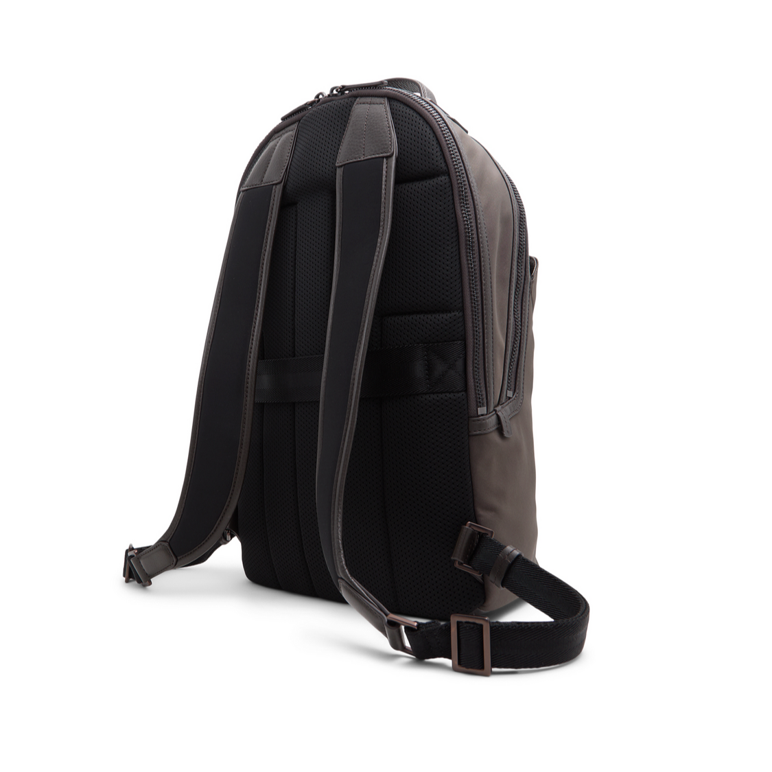 Nylon Leather Trim Double Zip Backpack